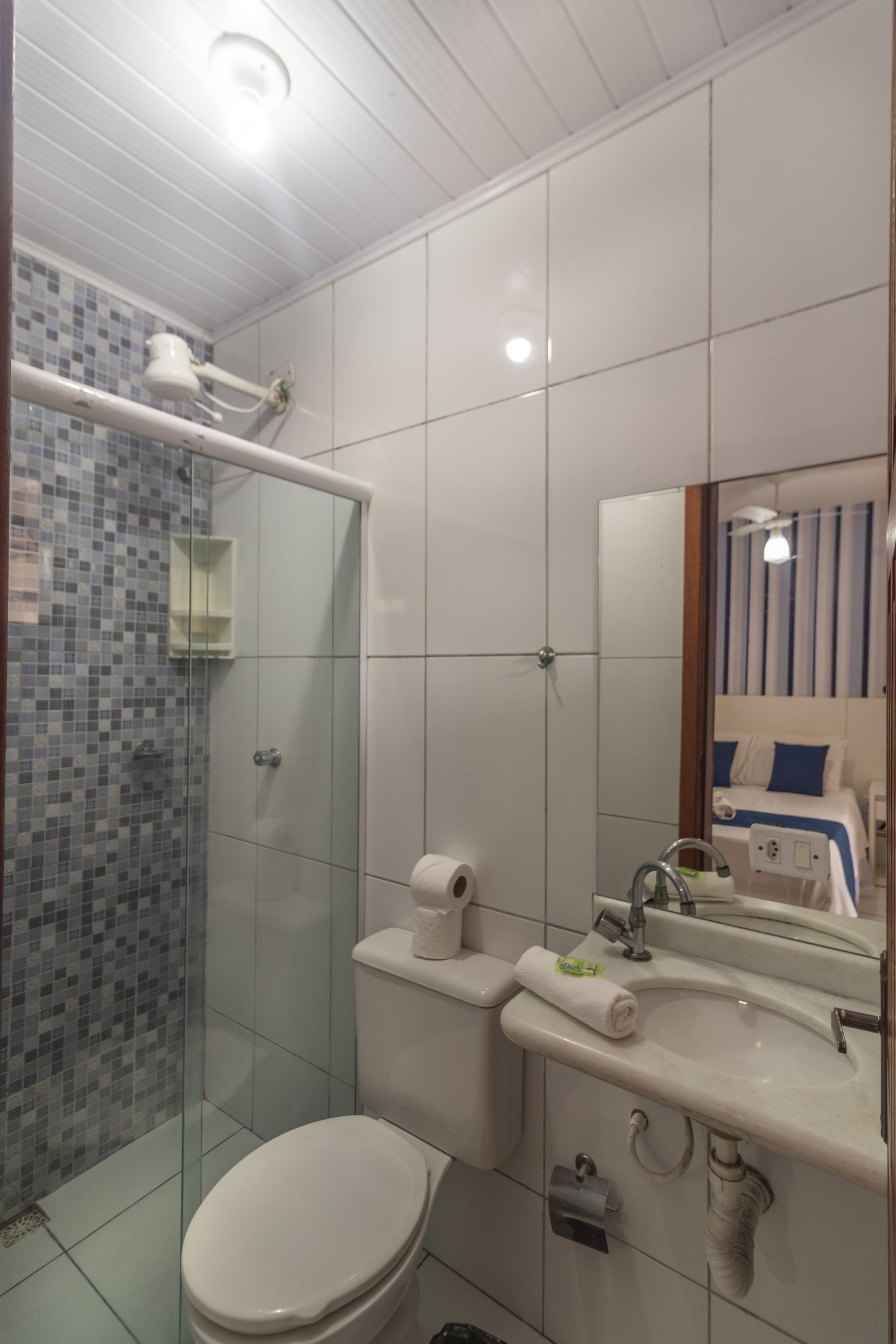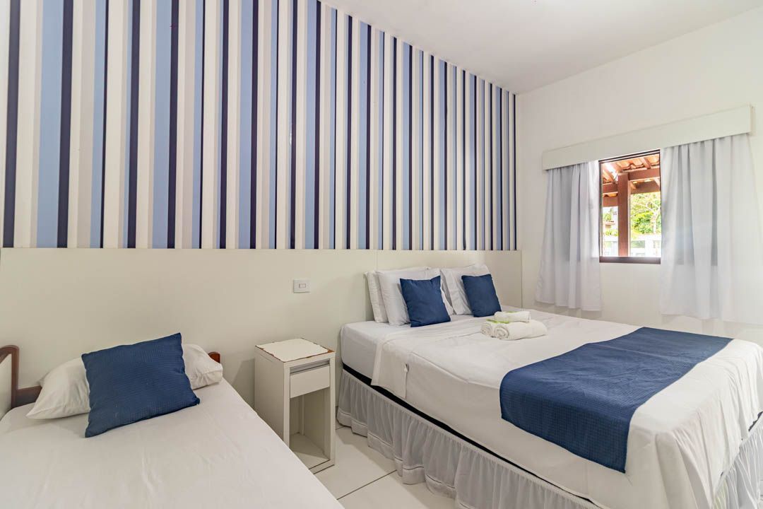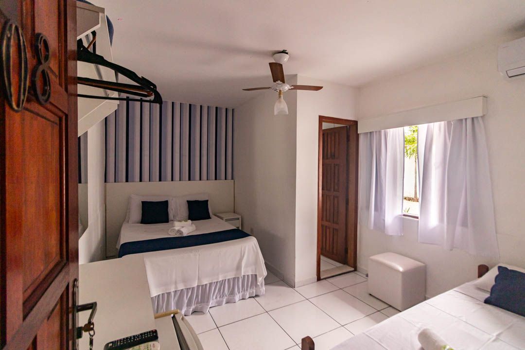 Este quarto é climatizado e oferece 1 cama de casal + 01 cama de solteiro.